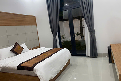 Phòng đôi được thiết kế rộng rãi, giường ngủ êm ái và đầy đủ tiện nghi, mang đến không gian nghỉ ngơi thoải mái cho hai khách.